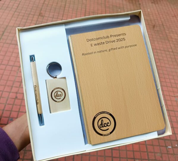 This coordinated set features three essential items—a diary, a pen, and a keychain—all crafted with high-quality wooden exteriors. The natural grain of the wood provides a unique texture to every piece, making each set one-of-a-kind even before personalization. Designed for durability and daily use, this set is a preferred choice for companies looking to provide an eco-conscious and premium gift.